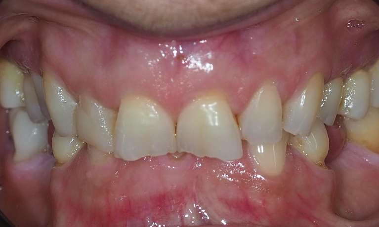 This patient presented with broken upper front teeth, which we carefully restored using composite bonding. The fractured edges and irregularities were repaired to recreate a natural tooth shape and colour. The finish blends seamlessly with the surrounding teeth, supporting both appearance and function.