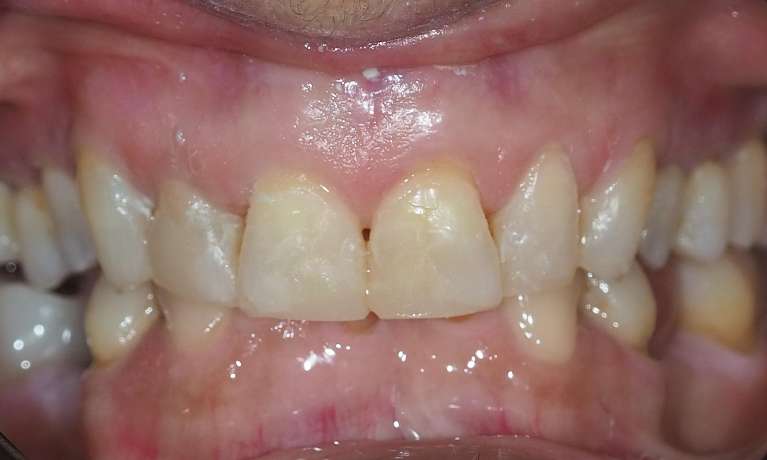 This treatment involved building up the front two teeth to improve their shape and appearance. A gentle enamel microabrasion technique was used to remove surface stains or white spots, followed by the application of a concentrated remineralising agent to strengthen the enamel and help prevent future decay.
